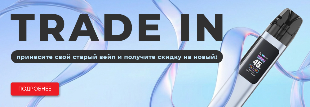 Сдайте старое устройство и получите скидку в виде бонусных баллов на покупку нового вейпа. Выбирайте актуальные модели и оплачивайте только разницу в стоимости. Узнайте подробности по ссылке.