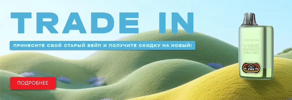Сдайте старое устройство и получите скидку в виде бонусных баллов на покупку нового вейпа. Выбирайте актуальные модели и оплачивайте только разницу в стоимости. Узнайте подробности по ссылке.