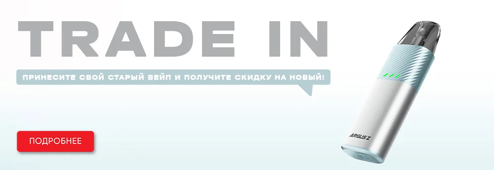 Сдайте старое устройство и получите скидку в виде бонусных баллов на покупку нового вейпа. Выбирайте актуальные модели и оплачивайте только разницу в стоимости. Узнайте подробности по ссылке.